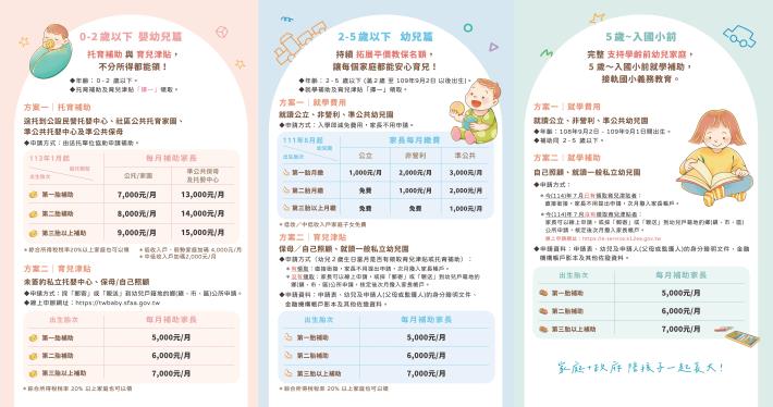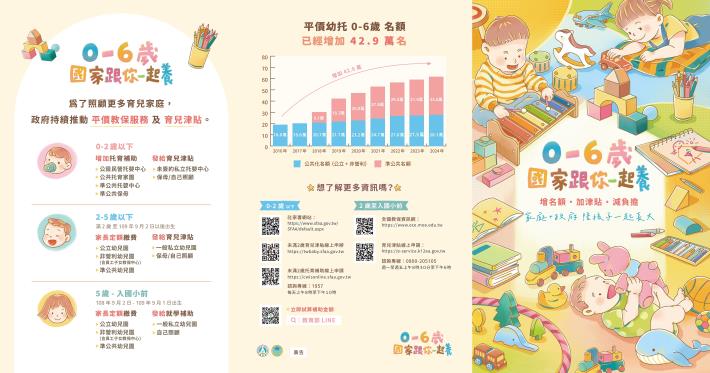 衛生福利部「0-6歲國家跟你一起養」宣導摺頁,請參閱附件。